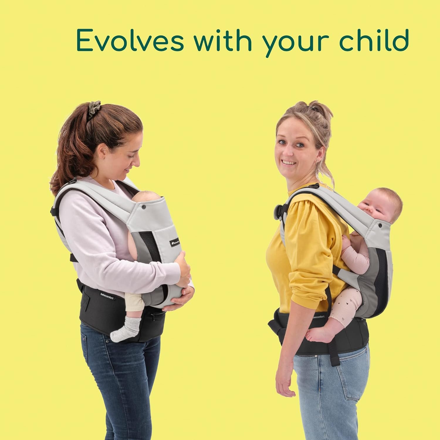 Le porte-bébé évolutif vous permet de porter bébé face à vous (3,5 à 15 kg), sur la hanche (3,5 à 15 kg) ou sur le dos (6 à 15 kg).