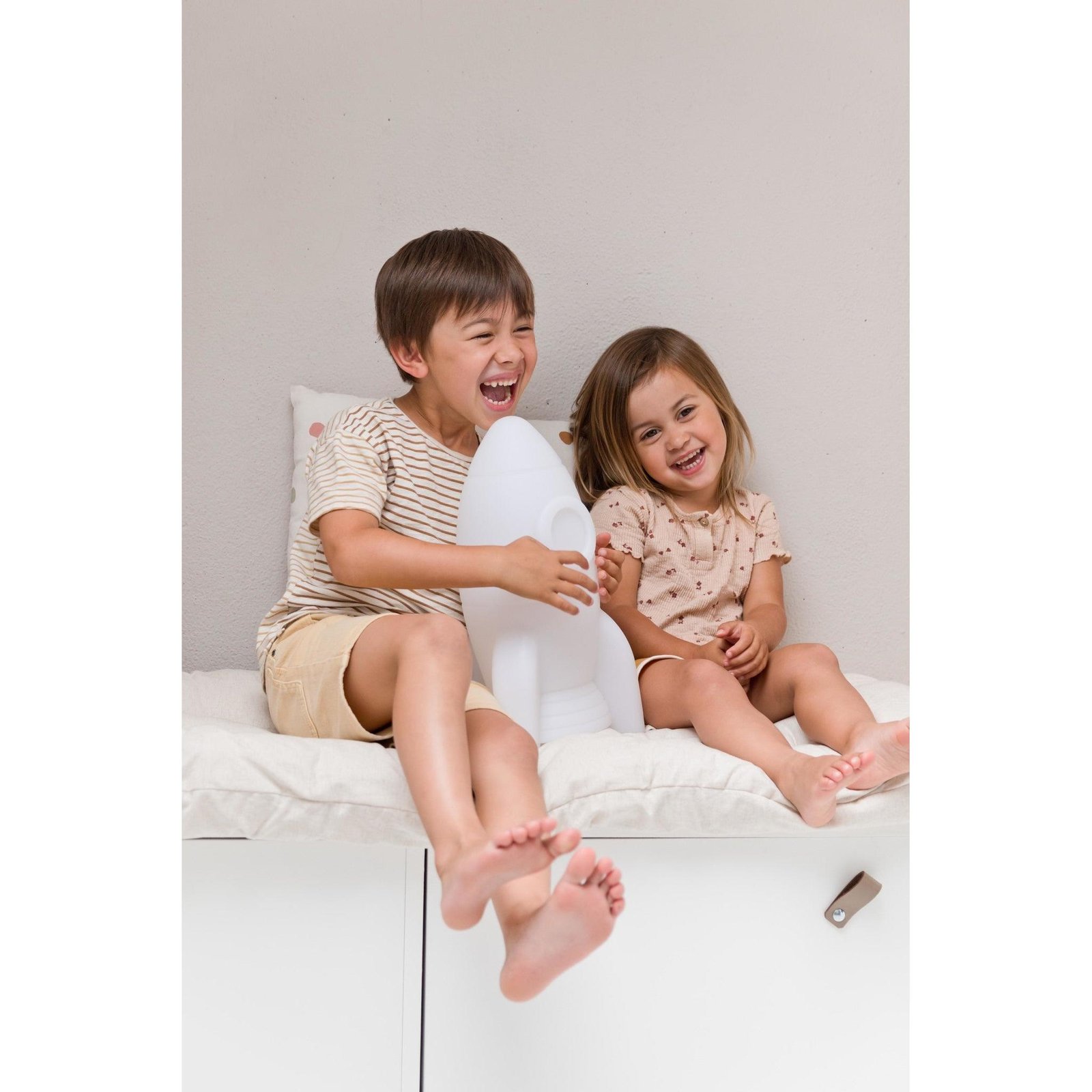 Cette lumire intrieure est rechargeable donc pas besoin de piles. En tapant sur la lumire, elle change de couleur. Que la lumire intrieure s’teigne automatiquement aprs 15 minutes ou choisir de la laisser allume toute la nuit, les deux options sont possibles grce au bouton marche/arrt. La lumire est faite d’un matriau dur et robuste, idal pour que les enfants puissent jouer avec.