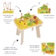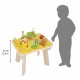 Direction la ferme, à la découverte d’animaux et légumes rigolos avec cette table multi-activités où les bébés retrouveront tous les incontournables ! Allez, c’est parti, faisons découvrir de nouveaux jeux à votre enfant avec cette table d’activité en bois ultra complète qui en propose 7 : 1 circuit où une poulette sur ressort pousse une boule en bois qui dévale une colline, 1 circuit de perles looping avec 9 billes en bois à faire coulisser, 3 engrenages avec 1 lapin amovible, 1 empilable carotte, 1 pomme de terre et 1 tomate à encastrer, 1 labyrinthe avec une autre poulette qui court se cacher sous la colline, et 1 œuf sonore rotatif. Avec cette table d’éveil en bois premier âge, les enfants à partir de 12 mois iront de découverte en découverte dans un univers qu’ils adorent ! On apprécie le design champêtre de cette table d’activités où bébé retrouvera d’adorables personnages composés de bois et de feutrine, pour favoriser sa découverte tactile. À partir d’un an, les tout-petits commencent à explorer leur environnement. Ils ne manipulent pas seulement leurs jouets d’éveil, mais se tiennent aussi debout pour voir toujours plus haut, plus loin. Une table d’activité Janod, c’est un support ludique qui permet à bébé de se déplacer autour de la table au gré de ses envies et en fonction de l’activité préférée du jour ! Il pourra s’asseoir ou se tenir debout devant la table, et c’est parti pour toujours plus de découvertes à la ferme ! La hauteur de la table est de 32 cm. Composée de bois issu de forêts gérées durablement, certifié FSC™, cette table d’activités ferme vous invite à prendre le temps de la découverte !