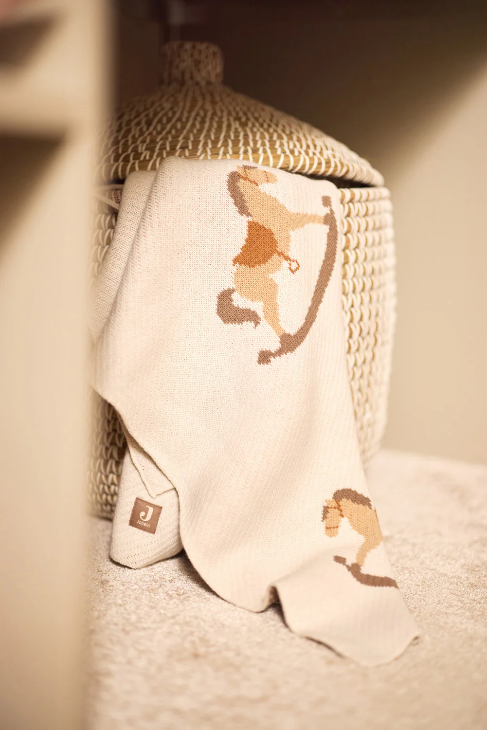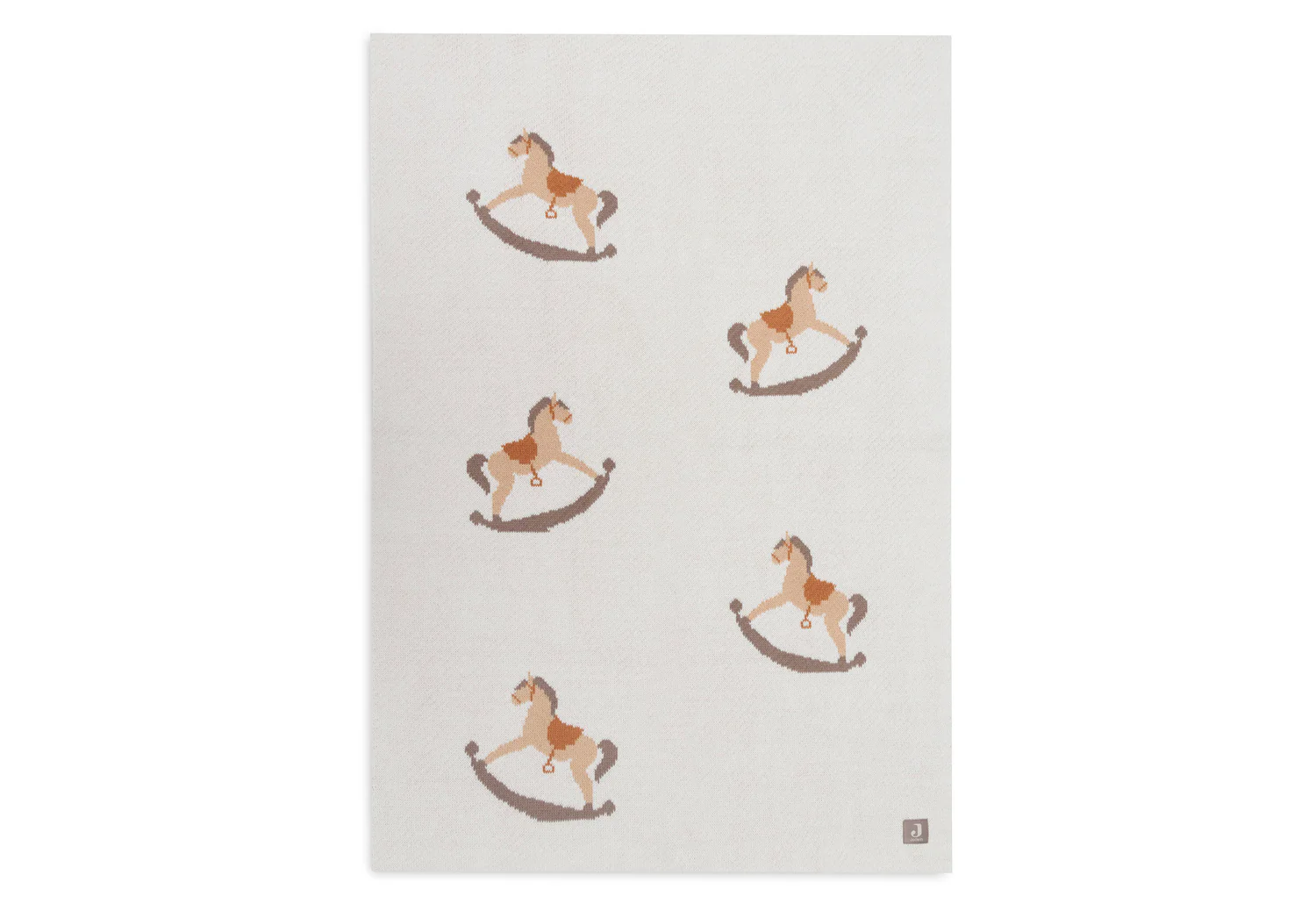 Nous sommes totalement sous le charme de cette adorable couverture de la collection Nostalgic Ride. Décorée de chevaux à bascule et fabriquée dans un tissu tricoté très doux, cette couverture conviendra parfaitement à n’importe quelle chambre d’enfant. Vous pouvez assortir cette couverture avec le drap à volants, le drap Slub ou le drap Nostalgic Ride assorti.