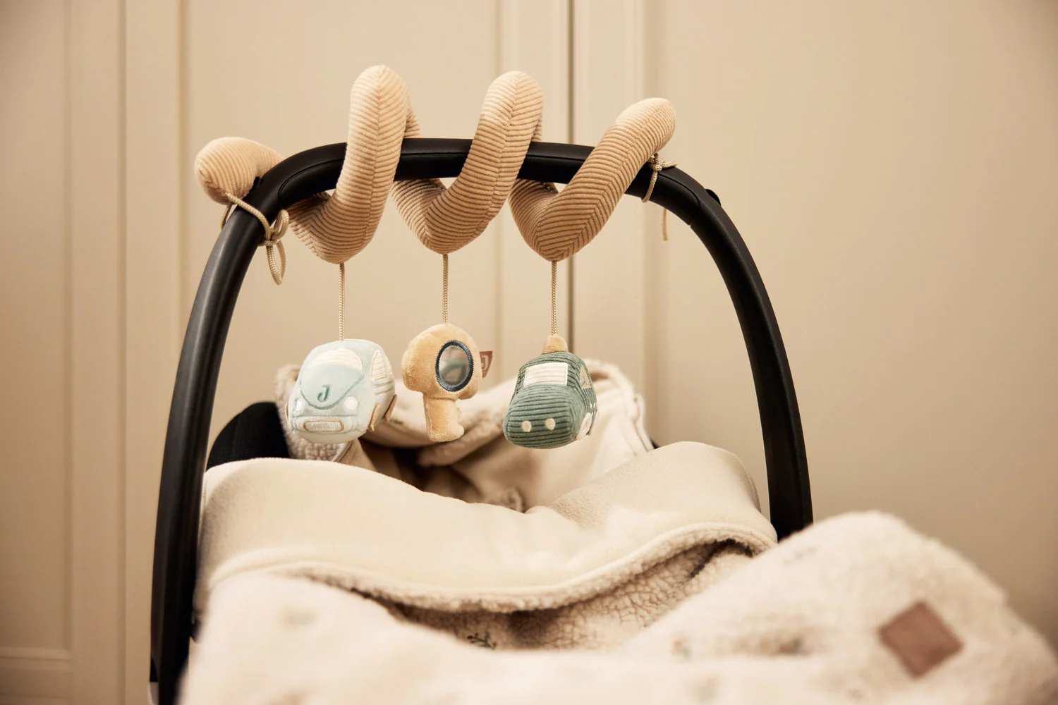 Parfaite pour votre enfant, cette spirale d’activité colorée offre des moments de jeu sans fin ! Avec deux joyeuses voitures, une clé pratique et une combinaison de tissu côtelé Biscuit, Cloud Blue et Sea Green, cette spirale est non seulement agréable à regarder, mais aussi à jouer. La spirale est dotée d’un miroir, d’une clochette et de crépitements qui stimulent les sens de votre bébé. Grâce aux boucles d’attache des deux côtés, vous pouvez facilement attacher la spirale au parc ou au maxi cosi. Trop mignon !