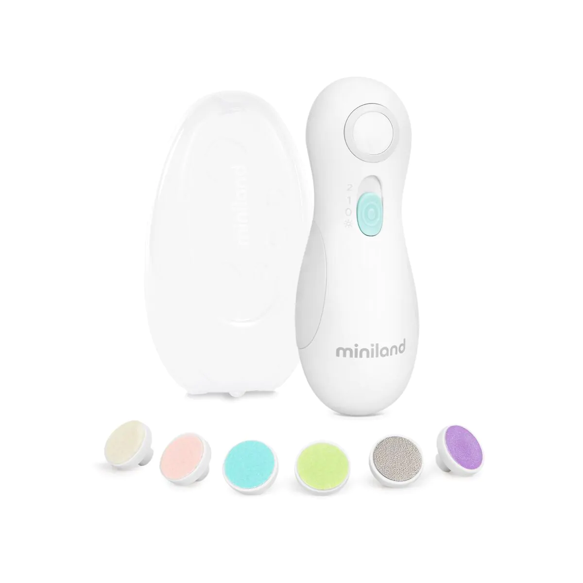 6 embouts différents pour toute la famille La lime comprend 6 embouts interchangeables pour limer rapidement, facilement et en toute sécurité les ongles délicats du bébé, ainsi que pour répondre aux besoins de toute la famille. Elle dispose de 4 embouts adaptés aux ongles des plus petits, avec différentes rugosités (ultrafine, fine, moyenne et épaisse). Et deux pour les adultes (polissage et brillance). Les embouts s’échangent facilement.2 vitesses Elle offre deux vitesses (élevée et basse) pour s’adapter à toutes les familles et limer les ongles en douceur. Sécurité Grâce à la fonction d’arrêt automatique pour la sécurité, vous pouvez limer en toute tranquillité les ongles du bébé, que ce soit des mains ou des pieds, car dès qu’il entre en contact avec la peau, il cesse de fonctionner. Parfaite pour l’emporter partout La lime de Miniland est idéale à emporter partout, car en plus d’être petite et compacte, elle comprend un étui où vous pouvez ranger à la fois la lime et ses embouts pour l’avoir toujours à portée de main. Moteur silencieux Grâce à son moteur silencieux, vous pourrez limer les ongles de votre bébé sans le réveiller. Ergonomique et facile à utiliser Conçue pour les ongles délicats et fi ns des bébés, elle permet de limer les ongles rapidement et facilement.